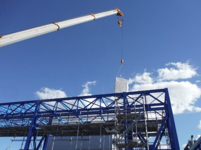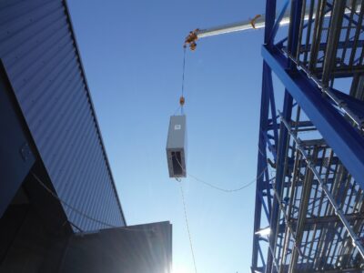 過去、盤搬入の際ストラクチャーを横断して電気室に搬入したときの写真です。
